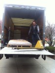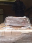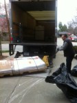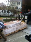 Our kitchen project is not following the same standard gourmet kitchen redo approach. After months and months of looking for bamboo cabinets at various pricepoints we decided to go with IKEA backend carcasses and custom made bamboo doors and drawer fronts. In addition, the new kitchen required several custom pieces to support our design. All bamboo work was done by Semihandmade out of Los Angeles (more on these guys later). So in the end we have hundreds of IKEA pieces that will be brought together with close to that many bamboo bits. Today we received delivery of two ginormous pallets, each 4′ x 8′. They were shipped to us from Los Angeles via R&L Carriers. The delivery driver, Tom did a great job unloading these pallets with the much appreciated assistance of our contractors Wayne and Dallas.